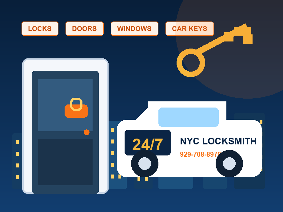 NYC locksmith door and window repair service illustration